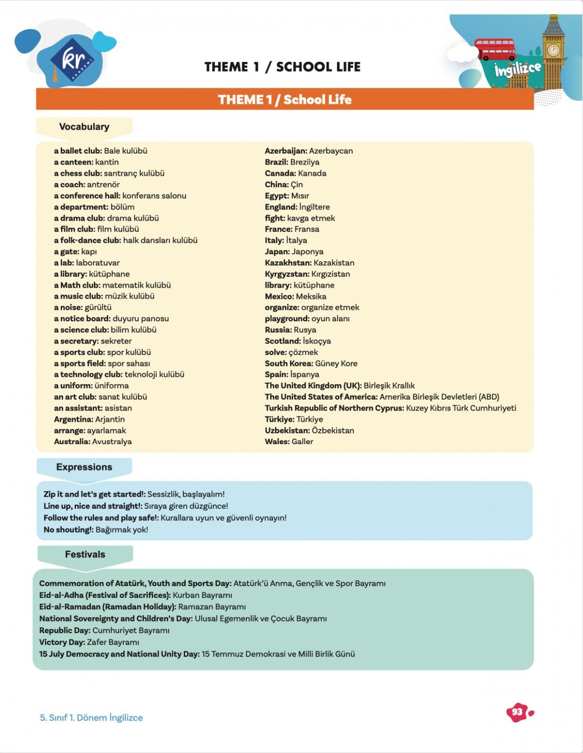 Kitap sadece 1. Dönem konularını baz almakla birlikte tüm dersleri içermektedir. Kitapta;