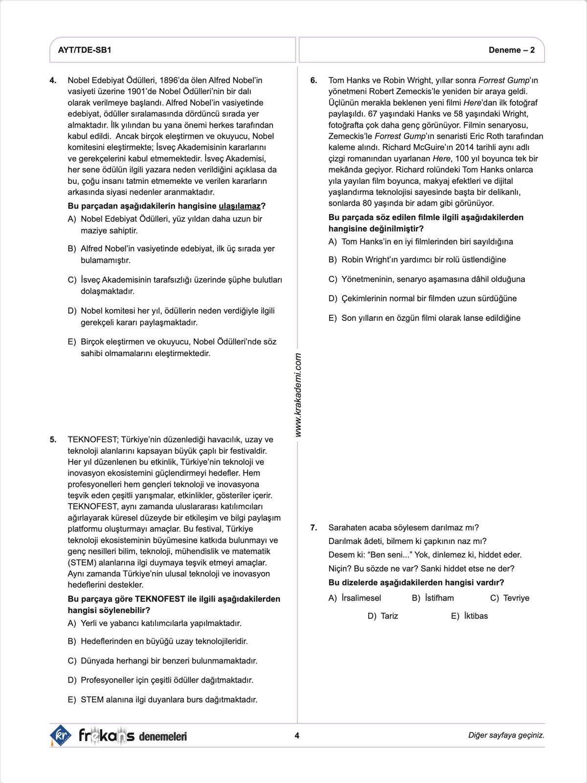 AYT 5 Frekans Denemeleri KR Akademi Yayınları
