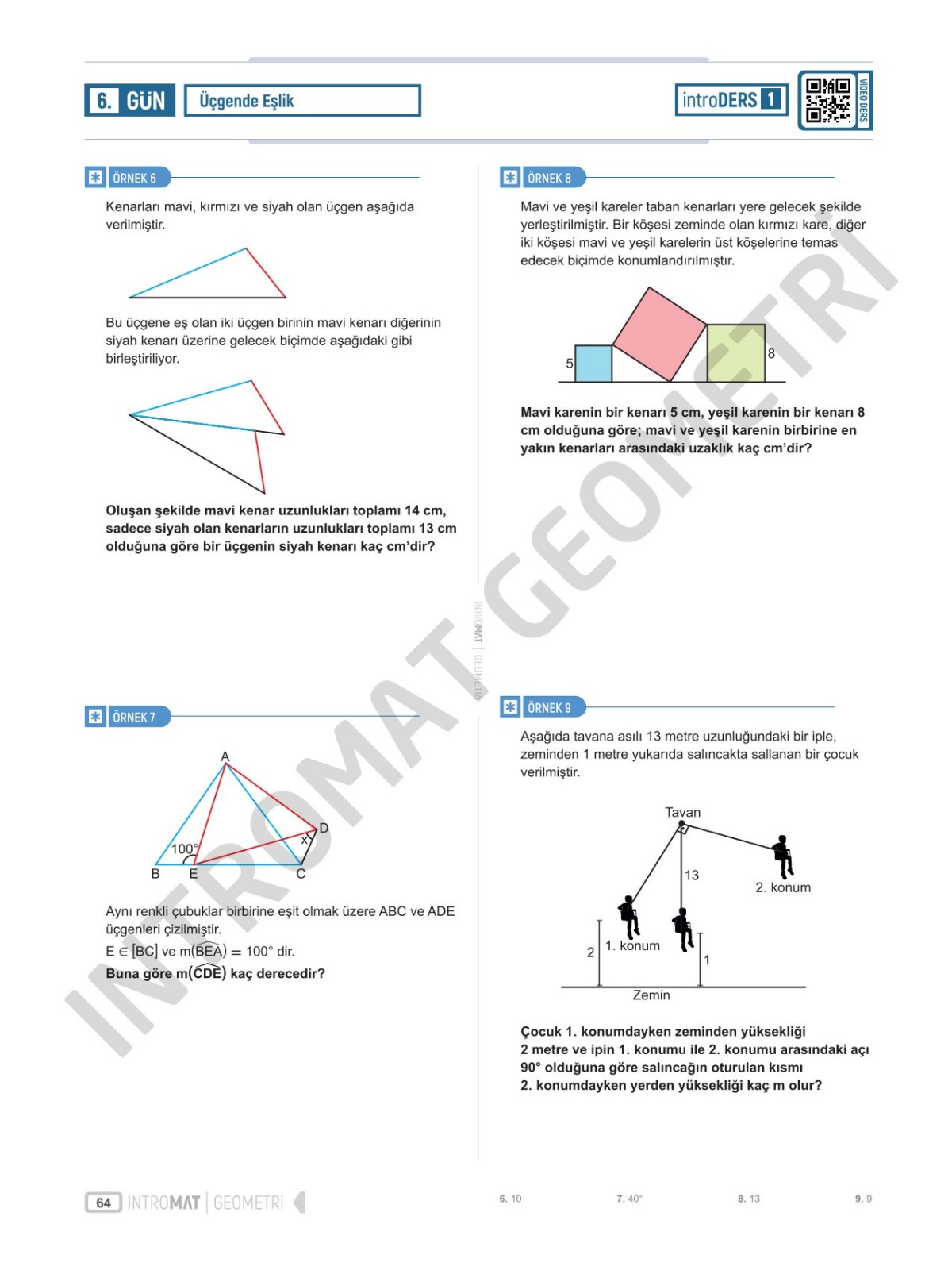 Gerçekten geometri öğrenmek zor mu? Yoksa yalnızca yanlış yerden mi başlıyoruz? Çoğu öğrenci geometriyi duyar duymaz “Ben yapamam.” diyor. Açı, paralellik, üçgen, benzerlik derken işin içinden çıkılmaz hâle geliyor gibi görünüyor. Ama şunu bil: Geometri sanıldığı kadar karmaşık değil. Aslında geometri, doğru yerden başlandığında ve adım adım ilerlendiğinde matematiğin en eğlenceli, en mantıklı kısmıdır. Eğer bu kitabı eline aldıysan, geometriye doğru adımla başlıyorsun. Bu kitap, karmaşık gibi görünen şekillerin aslında ne kadar basit bir mantıkla çözülebileceğini göstermek için yazıldı. Her bölümde, “Bu kadar kolay mıymış!” dedirtecek bir ilerleme planıyla karşılaşacaksın. 15 gün olarak planlanan bu çalışma, seni geometriye sağlam bir temel üzerinden hazırlayacak. Bir şekle nasıl bakman gerektiğini, hangi durumda hangi kuralı fark etmen gerektiğini, yani geometrik düşünme becerisini kazandıracak. Zaten işin sırrı da burada: Formülleri ezberlemekte değil, mantığı fark etmekte. Intromat Geometri projesi, geometrinin temelini en sade hâliyle anlatmak için tasarlandı. Matematiğin soyut tarafı burada şekil kazanıyor, anlam görünür hâle geliyor. Bu kamp boyunca çizerek, izleyerek, keşfederek ilerleyeceksin. Ve sonunda, “Geometri benim için artık zor değil.” diyeceksin. Doğru bir başlangıç, sağlam bir temel ve sabırlı bir öğrenme yolculuğu… İşte geometrinin kapısını açan üç anahtar bunlar. Hazırsan, sadece bir şekle bakarak onlarca bilgiyi fark edebileceğin o dünyaya ilk adımını atıyoruz. Artık “gözle gör, akılla çöz” zamanı!